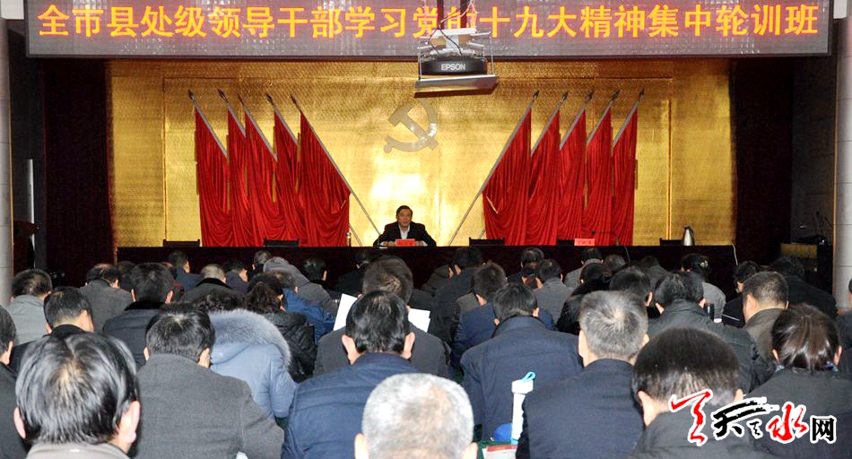 天天天水网讯【记者杨璟】1月25日,市委常委、常务副市长赵卫东为参加全市县处级领导干部学习党的十九大精神集中轮训班的学员作专题辅导报告。
