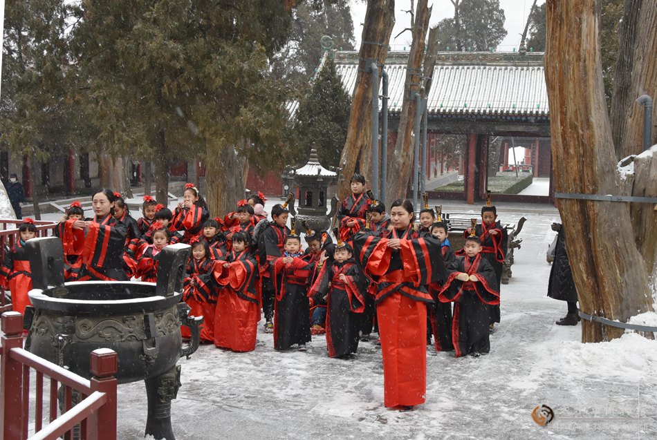 此次活动分三部分进行:一是了解汉代祭祀礼仪和腊八习俗;二是着汉服学习汉代祭祀礼仪在伏羲庙先天殿祭拜人文始祖;三是介绍腊八粥的食材,现场泡制腊八蒜。