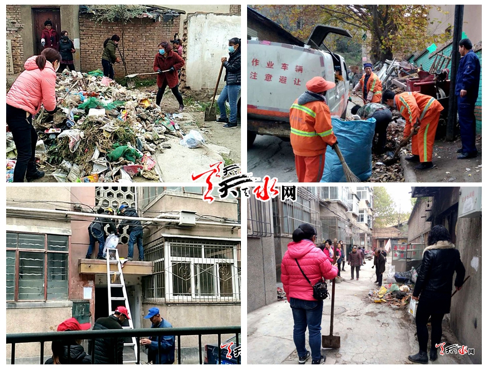 天水市中级人民法院、天水逸夫中学在职党员率先垂范,分别与社区联合开展了省建八公司平房区等区域的环境整治。开展的定期不定期“全域无垃圾”环境整治活动,不仅直接美化了区域的环境,而且展现了党组织的风采,发挥了党员的先锋模范作用,为广大居民树立了榜样。