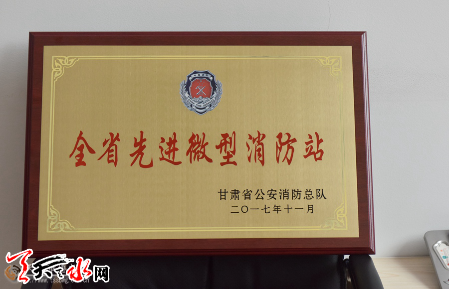 去年,天水市博物馆微型消防站充分发挥防火、灭火、宣传“三队合一”的作用,在有效提高自查自纠、自防自救能力,处置初级火灾等方面作出积极贡献,为此,甘肃省公安消防总队在通报表彰的同时颁发奖牌一面,并奖励价值5000元的装备器材“微型消防站防火巡查箱”2个。
