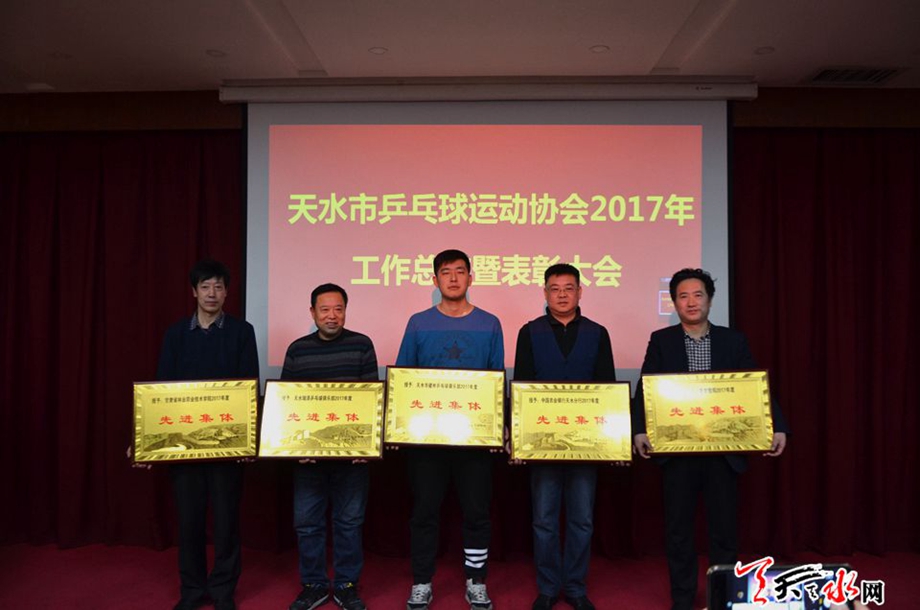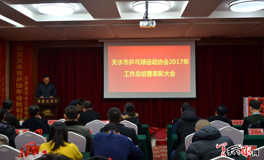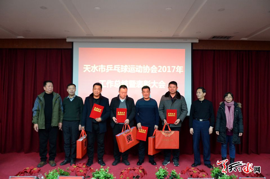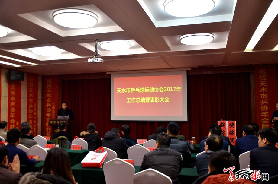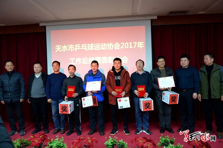 天天天水网讯【记者 张文都】1月28日,天水市乒乓球运动协会2017度工作总结暨表彰会在天水凯悦大酒店召开,会议授予张家川县财政局等10家单位为“2017年度先进集体”荣誉称号,授予杨宝成等10名同志为“2017年度先进个人”荣誉称号。