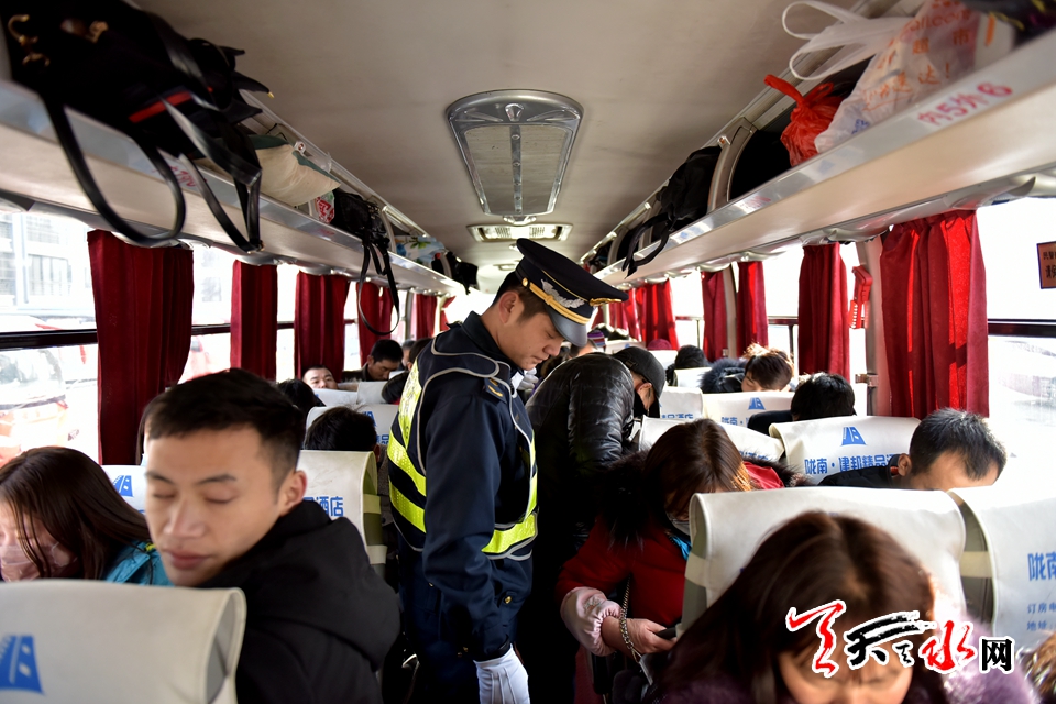 麦积运管部门在现场检查中表示;每位乘客平安回家,安心乘车牵挂着千家万户的过年心情,为营造一个安全,有序的春运营运环境,重点路段对班线车辆、公交车、出租车辆的营运证照、票价执行情况、“三防”设施进行排查,不定时进行夜间突击检查,重点打击经营者反映强烈火车站广场、麦积汽车站、城乡结合部等区域从事非法经营的“黑车”,出租车不按规定使用计价器、驾驶员无从业资格证、不携带道路运输证件,班线车辆、出租车辆私涨票价等行为。