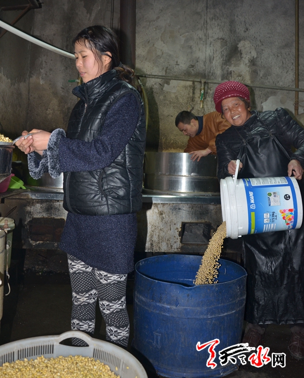 △60斤一个的豆腐,往常一天卖四五个,腊月逢集的日子要卖八九个。豆腐作坊中,包粉香和儿子、儿媳更忙了。