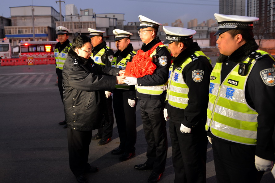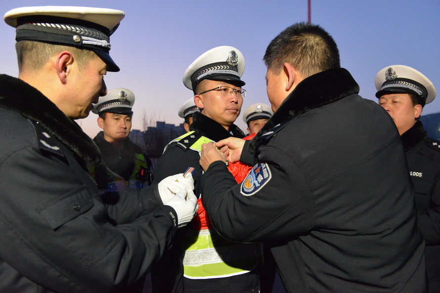 在表彰现场,李晓卫同志指出,元月以来,面对低温降雪冰冻等恶劣天气,全省公安机关广大一线民警自觉践行“对党忠诚,服务人民,执法公正,纪律严明”的总要求,牢固树立“四个意识”,以高度的责任感和使命感,战风雪,抗严寒,无私奉献,连续作战,涌现出了韩亮等一批先进典型。按照副省长、省公安厅党委书记、厅长余建同志指示,省厅启动战时表彰机制,对韩亮等4名同志分别记二、三等功、李永星等7名同志给予嘉奖,希望受到表彰的同志珍惜荣誉,戒骄戒躁,再立新功。李晓卫同志强调,近期冰雪天气频发,一线民警要向先进看齐,学习他们勇于担当、甘于奉献的精神,学习他们吃苦耐劳、顽强奋战的优良作风,始终坚持以人民为中心,始终做好服务和保障民生工作,立足本职,爱岗敬业,以新时代新标准严格要求自己,发扬成绩,顽强奋战,在新征程上有新气象新作为。李晓卫同志还强调,春运工作马上开始,希望全体民警克服疲劳厌战情绪,发扬艰苦奋斗精神,全身心投入到春运安保工作中,确保2018年春运有序开展。