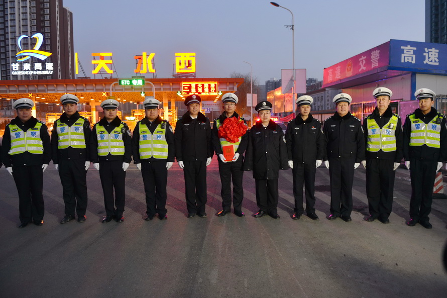 天天天水网讯(通讯员刘冀远)1月31日上午7时30分许,省公安厅党委委员、政治部主任李晓卫带领厅政治部人训处、宣传处、省电视台驻厅记者站相关负责人一行4人深入天定高速天水西收费站,对天水市公安局交警支队玉泉高速公路大队秩序二中队中队长韩亮同志进行现场表彰。