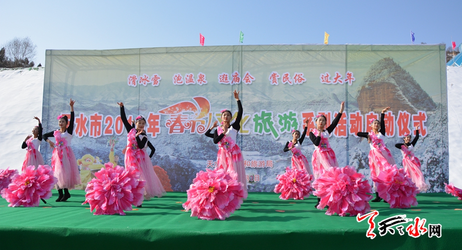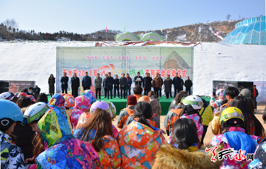天天天水网讯【记者张彬霞】2月3日上午,由市文化和旅游局主办的天水市2018年春节文化旅游系列活动启动仪式在秦州区李官湾南山云端滑雪场举行,此次系列活动以滑冰雪、泡温泉、逛庙会、赏民俗、过大年为主题,旨在依托我市丰富的旅游资源以及春节期间的民俗文化活动,进一步促进我市淡季旅游市场发展。