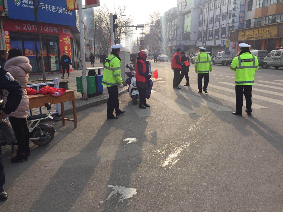 强化城区道路交通秩序整治。城区中队民警城区交通秩序管理,联合交通志愿者,在主要十字路口积极开展文明交通志愿劝导,劝导行人、非机动车遵守交通信号,机动车礼让斑马线,积极营造良好的城区道路交通秩序。