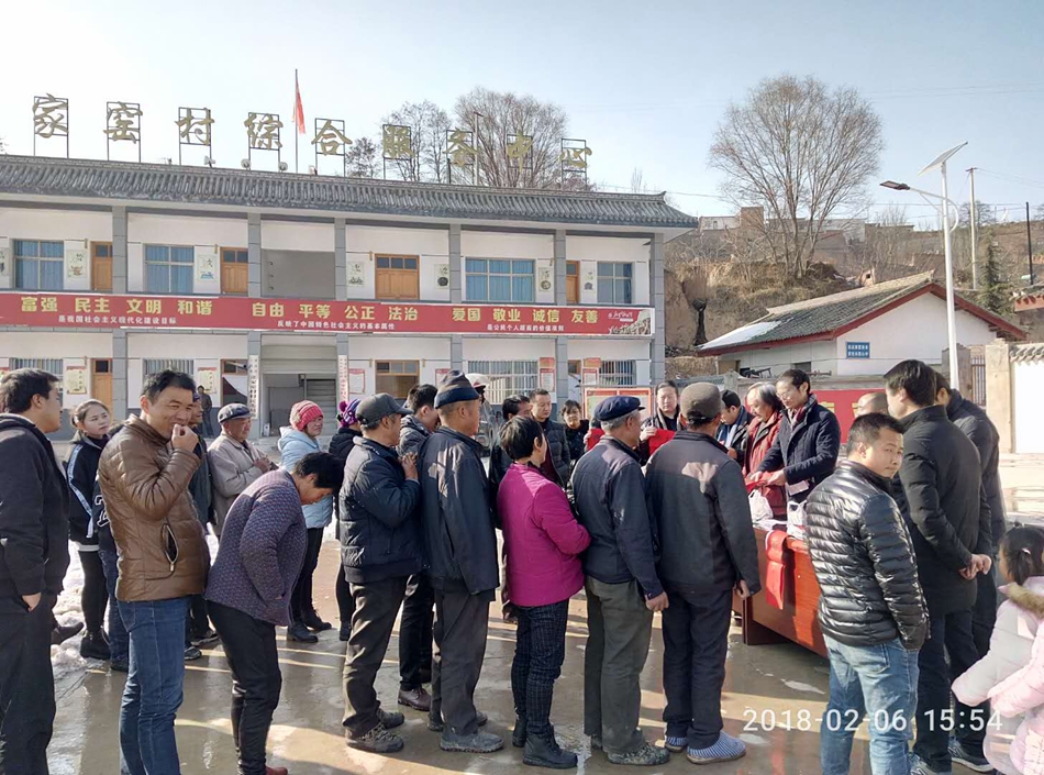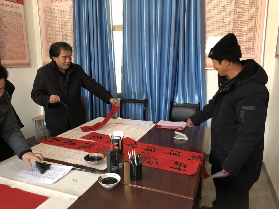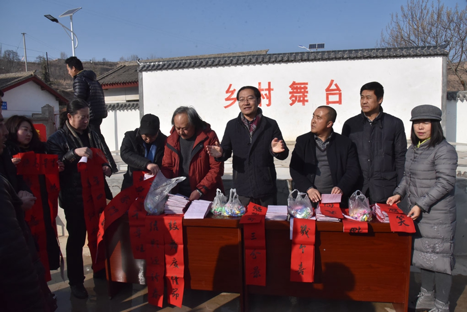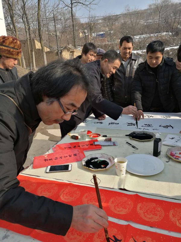 同日,天水市文化馆馆长李靖带领中层以上干部和全体党员到甘谷县六峰镇张家窑村慰问贫困户,开展送春联活动。天水美术馆副馆长陈华强带领干部职工、书画专业人员赴甘谷县六峰镇麦堆坪村进行慰问,开展送书画送温暖,深受村民欢迎。现场书写春联300余幅,中堂50幅,极大地满足了村民年节需求。市西秦腔研究院副院长常小红一行赴甘谷县谢家湾乡鲜家坪村开展节前慰问贫困户活动,为困难家庭送去米面等慰问品。天水广播电视台组织职工赴帮扶村甘谷县谢家湾乡地儿湾村进行慰问,送去米油被等物。