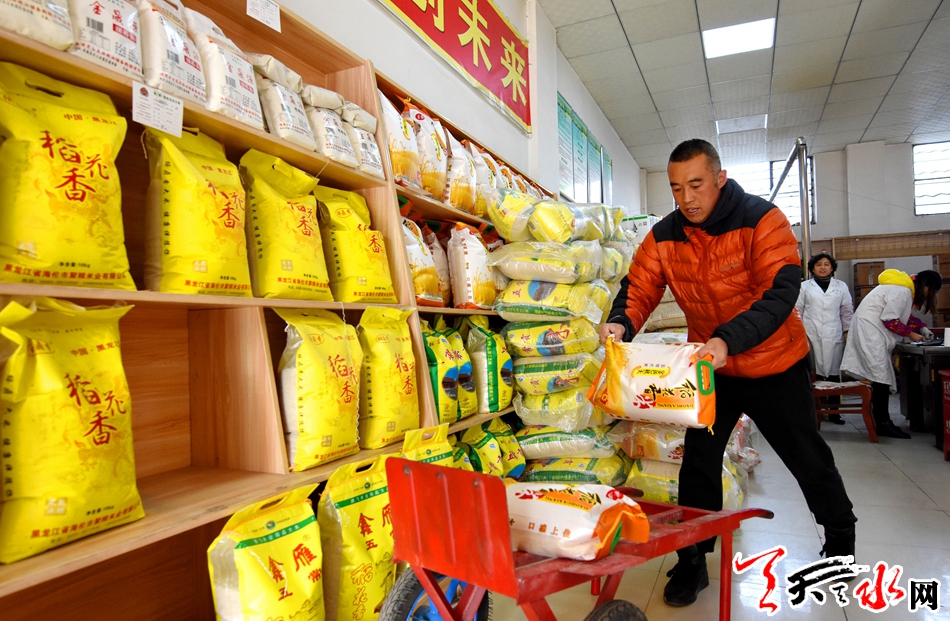 2月6日,市民在秦州区解放路放心粮油示范店购买大米。