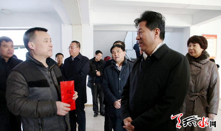 张明泰一行先后来到天水羲皇阿胶有限公司、张家川县康宏药业有限责任公司、县中心敬老院,看望慰问了困难职工、五保户、低保户、优抚对象、残疾人、困难党员等,为他们送去了慰问金,并致以新春的问候和祝福。