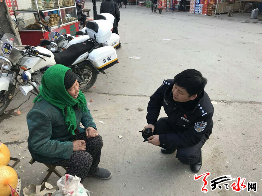 天天天水网讯【记者杨旭】2月8日下午,在麦积区中滩镇街道,一位85岁高龄老人因无法回家向正在此处执勤巡逻的民警求助,最终,在民警的爱心帮助下,将老人安全送回家中。