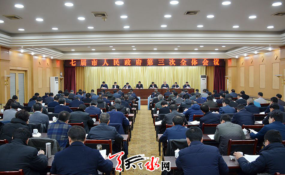天天天水网讯【全媒体记者吴丽娜】2月9日,市第七届人民政府召开第三次全体会议。市委副书记、市长王军在讲话中强调,要坚持以习近平新时代中国特色社会主义思想为指导,认真贯彻落实省政府第一次全体会议和市委七届四次全体会议暨全市经济工作会议、市“两会”精神,以坐不住的紧迫感、等不起的责任感、慢不得的危机感,全力抓好今年各项重点工作任务落实,推动全市经济社会持续健康发展。