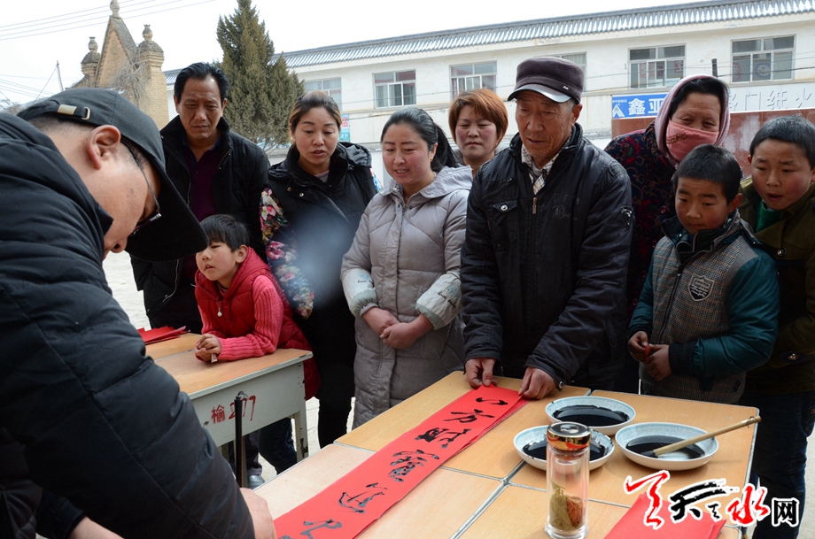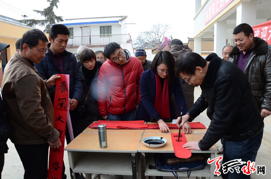 2月7日,在新春佳节来临之际,由市书法家协会和臻美和声文化传媒有限公司联合主办的名为“送万福进万家”写春联送祝福活动在大石镇榆川村举行。据悉,来自市书法家协会的近十名书法家现场挥洒笔墨,为当地群众书写了900副春联和“福”字。记者 马凯 摄