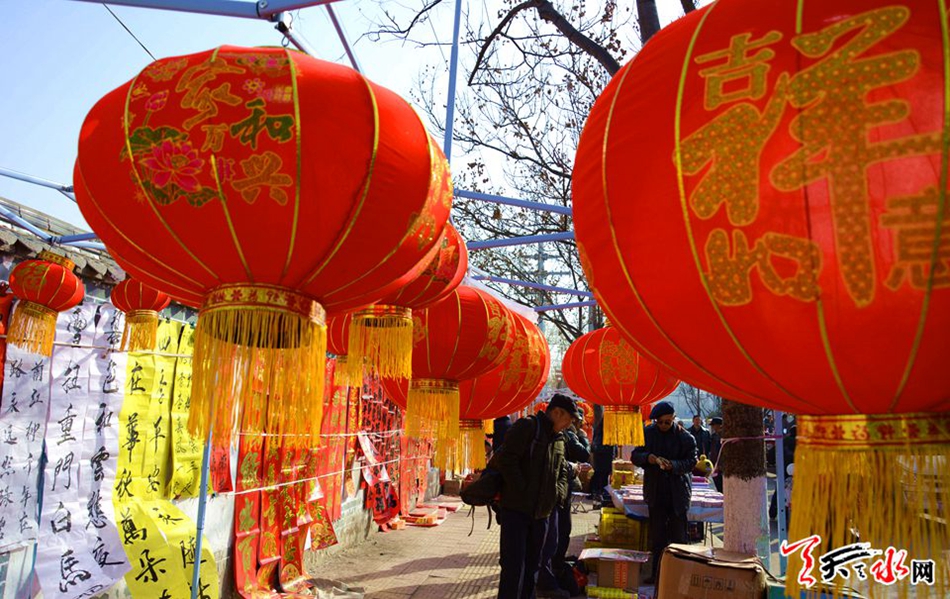 2月11日,记者走在麦积区城区和周边各乡镇集市上,随处可见高高挂起的大红灯笼,火红的中国结,尤其是寓意“春、吉祥、年年有余”的红彤彤的灯笼销售红火。