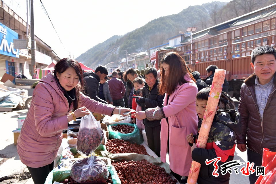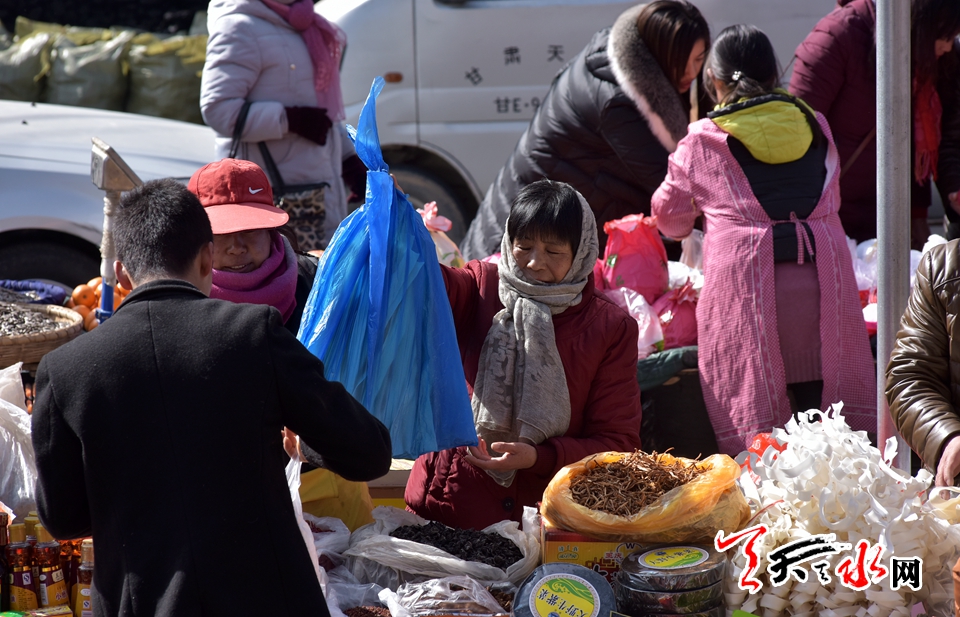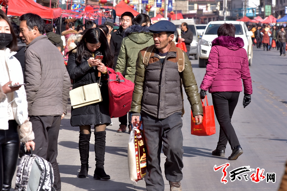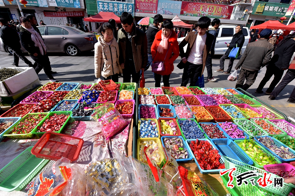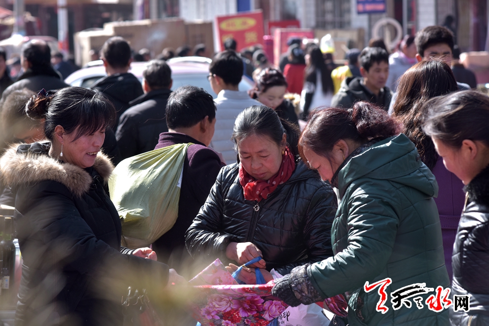 突飞猛进的时代变化,让城市以往的传统年味淡出了许多,这种赶年集的热闹场面只有在乡村才能寻得一二。2月11日,腊月二十六,天水市秦州区娘娘坝集上热闹的场面一浪高于一浪,在这里,城里市场有的,这里基本都有卖的,各色饮料,新鲜蔬菜,时装鞋帽,小吃土特产,娘娘坝周边四里八乡的村民三五成群逢着“三、六、九”的赶集日子,蜂拥至娘娘镇的主街上,置办年货是由头,凑热闹才是心愿所指。