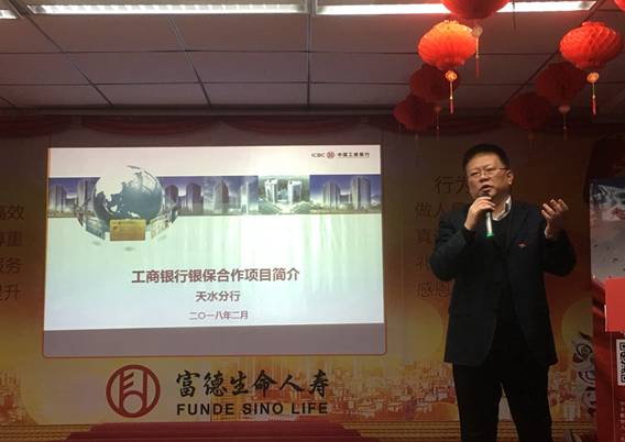 工商银行天水分行个人金融业务部总经理董跃荣先生就工商银行银保合作项目做了介绍,并指出双方长期以来在“资源整合、优势互补、互惠互利”的指导思想下,建立了良好的合作关系,此次与富德生命人寿天水中支联合举办工行理财产品讲座,是双方合作的创新,是建立长期战略伙伴关系的基础。