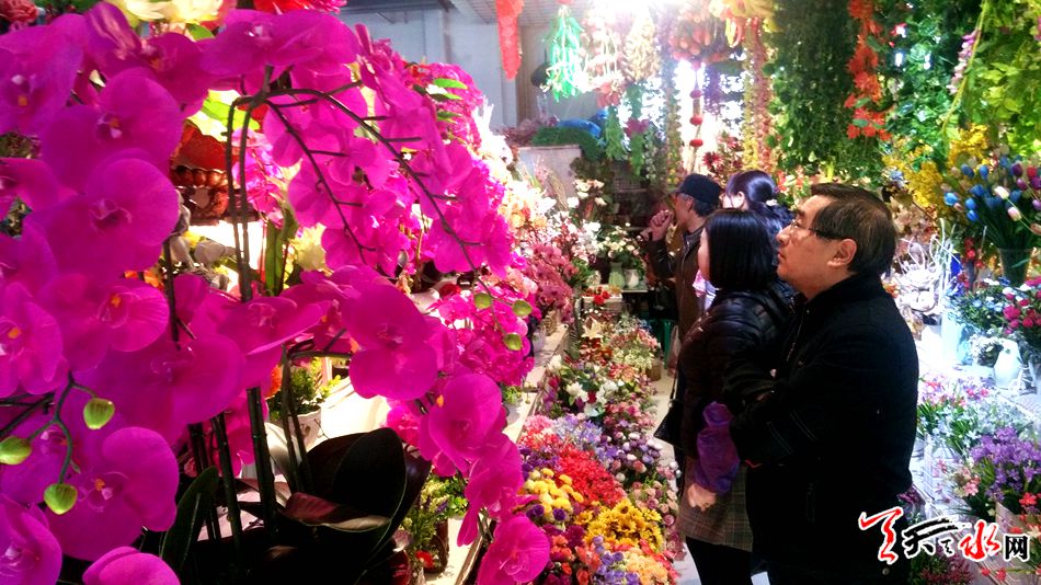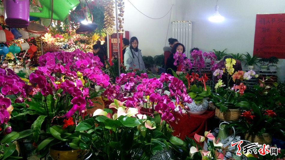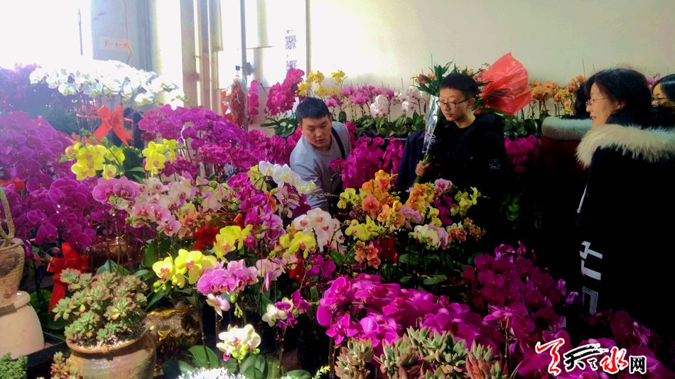 随着春节的临近,选购花卉扮靓居室成为市民的首选。2月11日,天水市秦州区花鸟鱼虫市场一片春意盎然, 千媚百态的花卉群芳吐艳,前来挑选年宵花的市民络绎不绝,蝴蝶兰、杜鹃花等盛开的花卉成为市民贺新春的最佳选择。