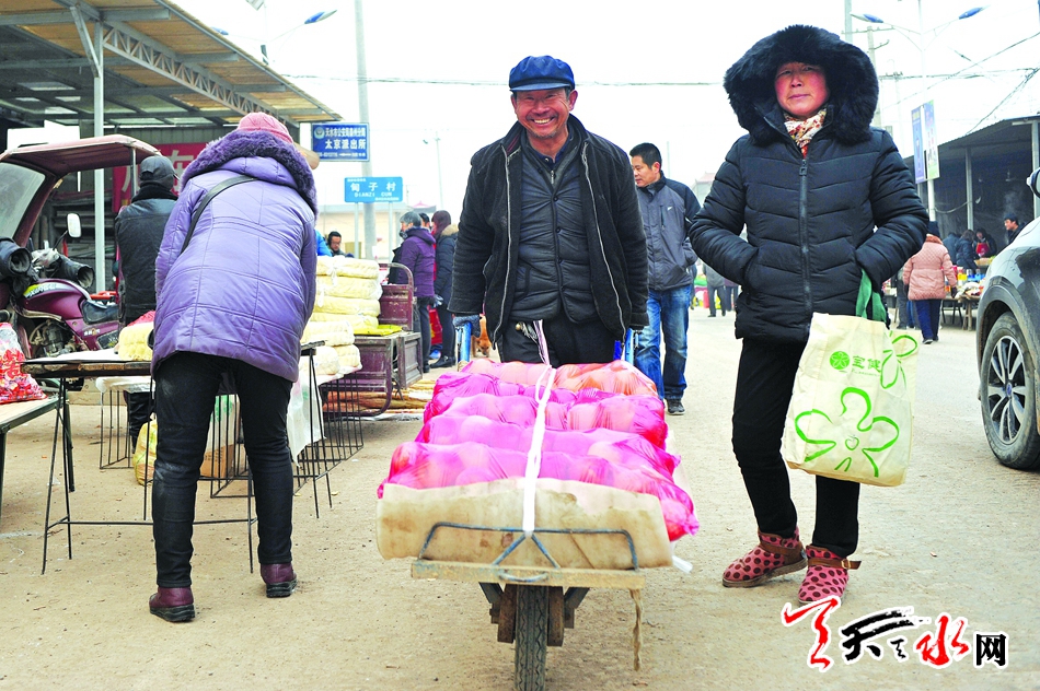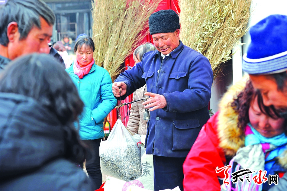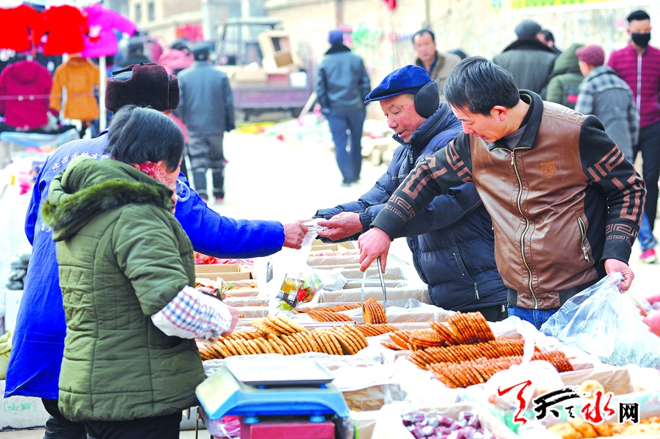 2月7日,农历腊月廿二,秦州区太京镇逢集。春节将近,乡村大集市红火热闹,本地和周边乡镇的乡亲们都聚集在这集市上,摩肩接踵,手提大包小包,铆足了劲办年货。