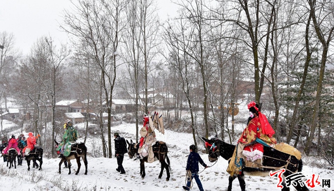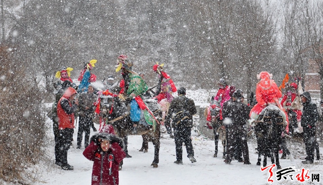 天天天水网讯 2月20日,农历正月初五,清水县陇东镇梁庄村春节时全村最盛大的节目“马社火”,随着领头人发出号令,锣鼓齐鸣开路,装扮一新的“马社火”伴随着锣鼓声开始走村串巷、热热闹闹、雷打不动“转”起来。