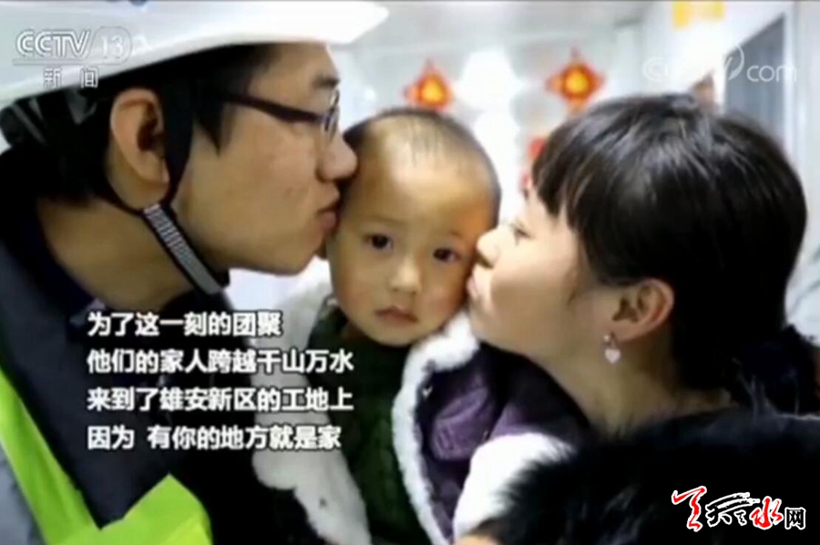天天天水网讯据央视专题报道 春节是万家团圆的日子,可有一部分人却因为要坚守岗位不能回家过年。为了这一刻的团聚,他们的家人,开始向着亲人的方向出发,今天《有你的地方才是家》系列,我们来认识这样的一对夫妻,丈夫是雄安新区的一名建设者,作为首批拓荒者,他和工友们承担着雄安新区首个项目的建设任务,为保证工程的连续性,身为工长的他,必须守好自己的一份责任,他的妻子带着刚满四个月的女儿,在大工地上给他带来了一份团圆的喜悦。