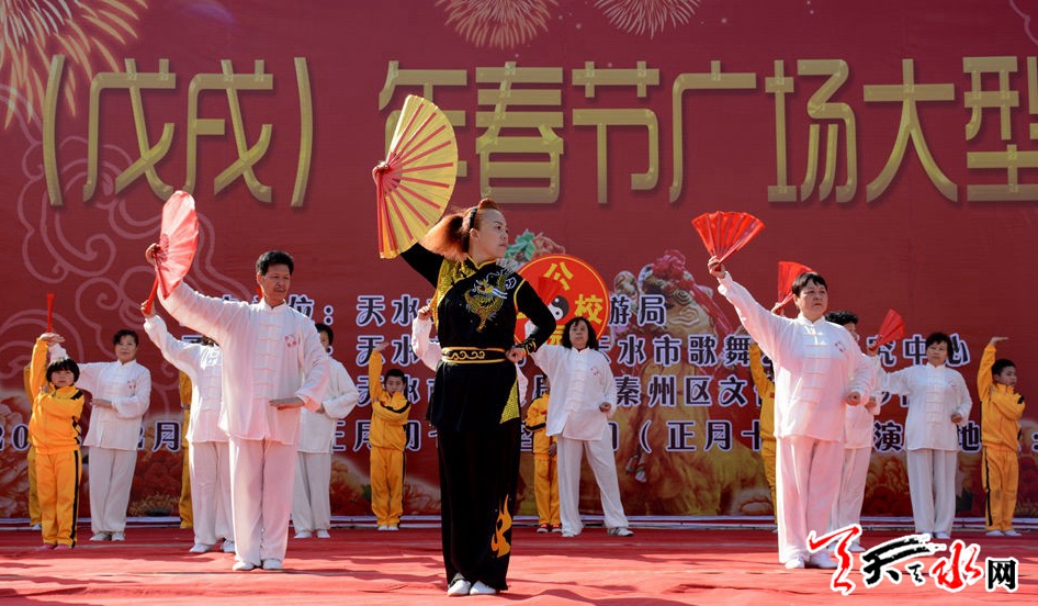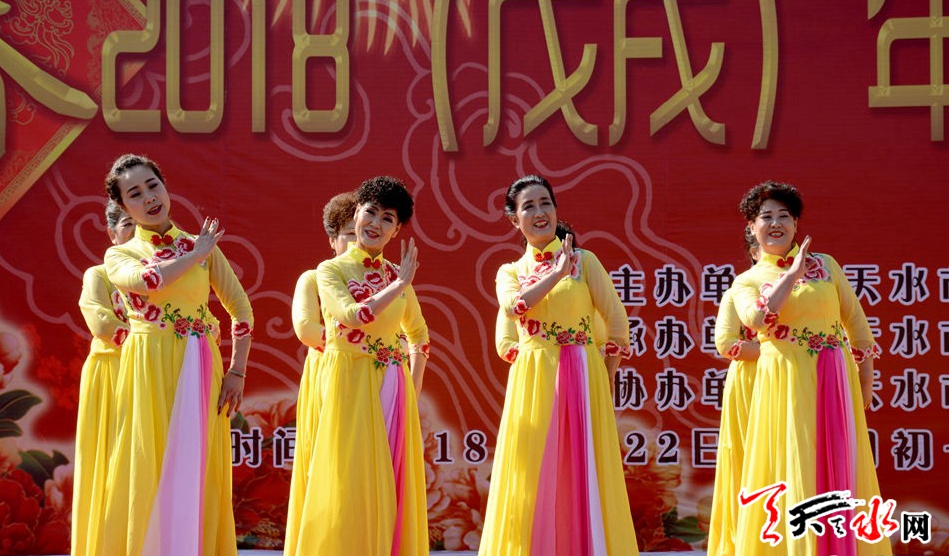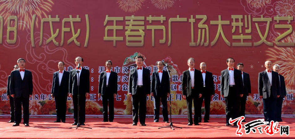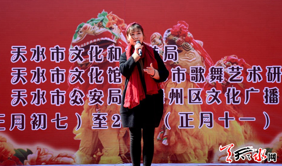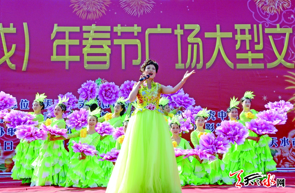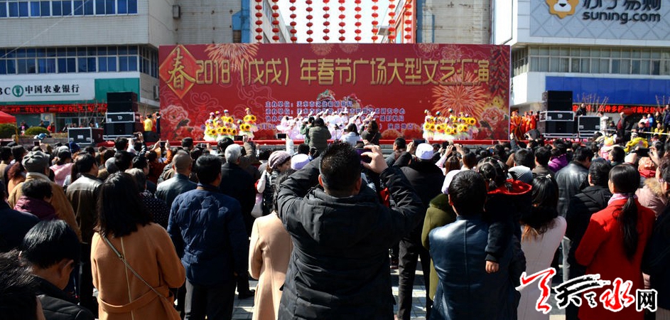 2月22日,由天水市文化和旅游局主办,天水市文化馆、天水市歌舞艺术研究中心承办的“金犬报春”2018(戊戌)年广场春节文化惠民演出在天水龙城广场举办。《和谐阳光》《共圆中国梦》《红高粱九儿》《天河热土》等十余个节目,让群众享受了一场文化盛宴。据悉,活动将持续至2月26日(正月十一)。 记者徐媛 摄