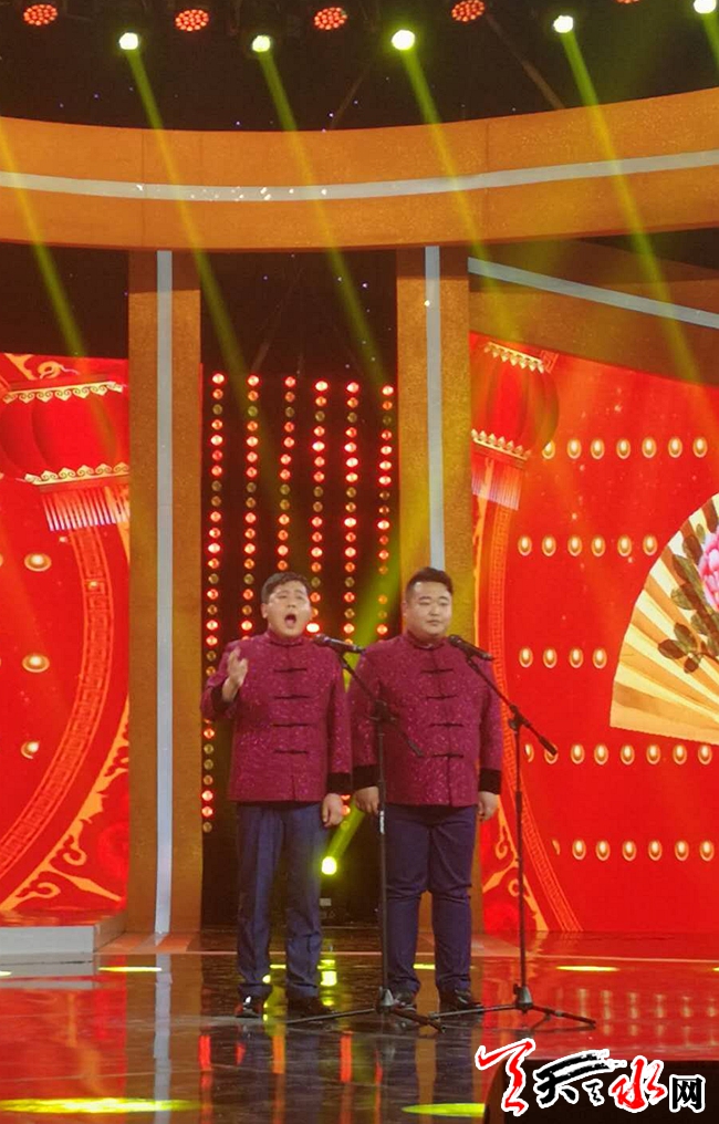 天天天水网讯(记者袁鹏辉)2018年2月22日,天水籍相声演员马骁、马旭表演的相声节目《秦腔新唱》在央视戏曲频道『一路欢笑』栏目晚间黄金强档播出,这也是天水籍相声演员首次受邀参加央视节目。他们表演的节目在给全国人民送去欢笑的同时,也为天水相声增光添彩。