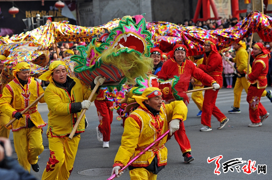 正月初八晚上至初九一整天,数万市民朝觐秦州区城北天靖山北麓的玉泉观,摸香炉、挂红绳,祈福平安。而在城市乡村陆续上演的马社火、高台、高跷、舞狮,更是精彩纷呈。