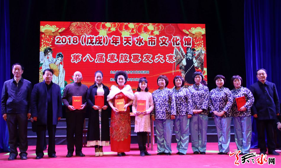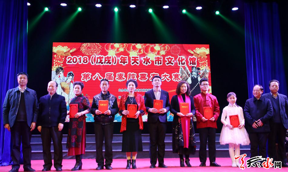 天天天水网讯【记者 张文都】2月26日下午,由市文化和旅游局主办,市文化馆承办的2018(戊戌)年第八届秦腔票友大赛圆满落幕,经过四天的激烈鏖战,王新平、刘贵霞拔得头筹,斩获一等奖。