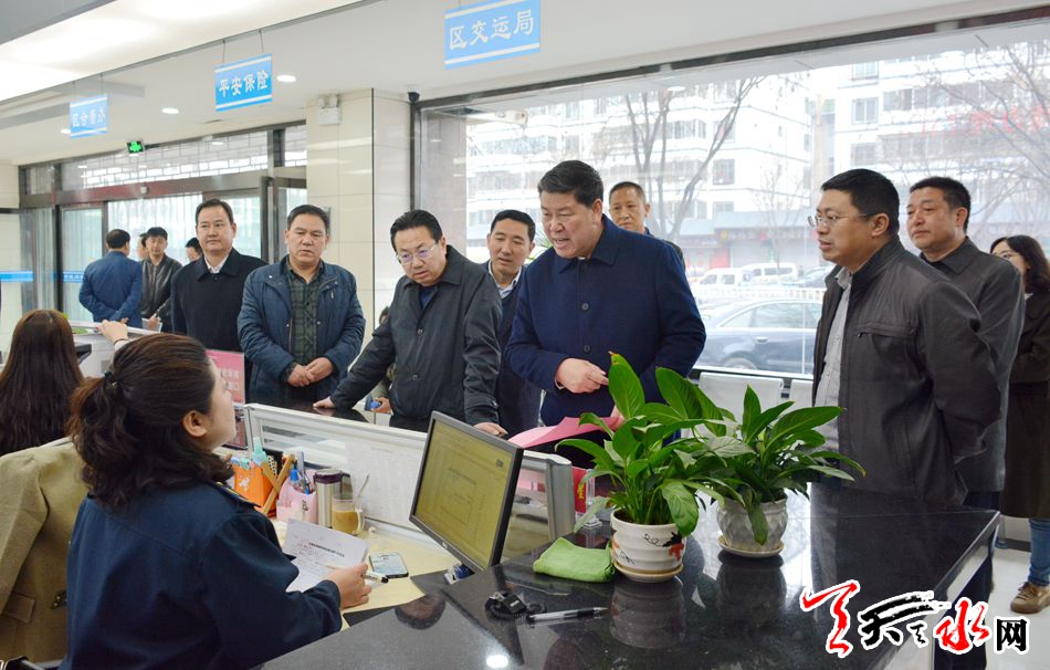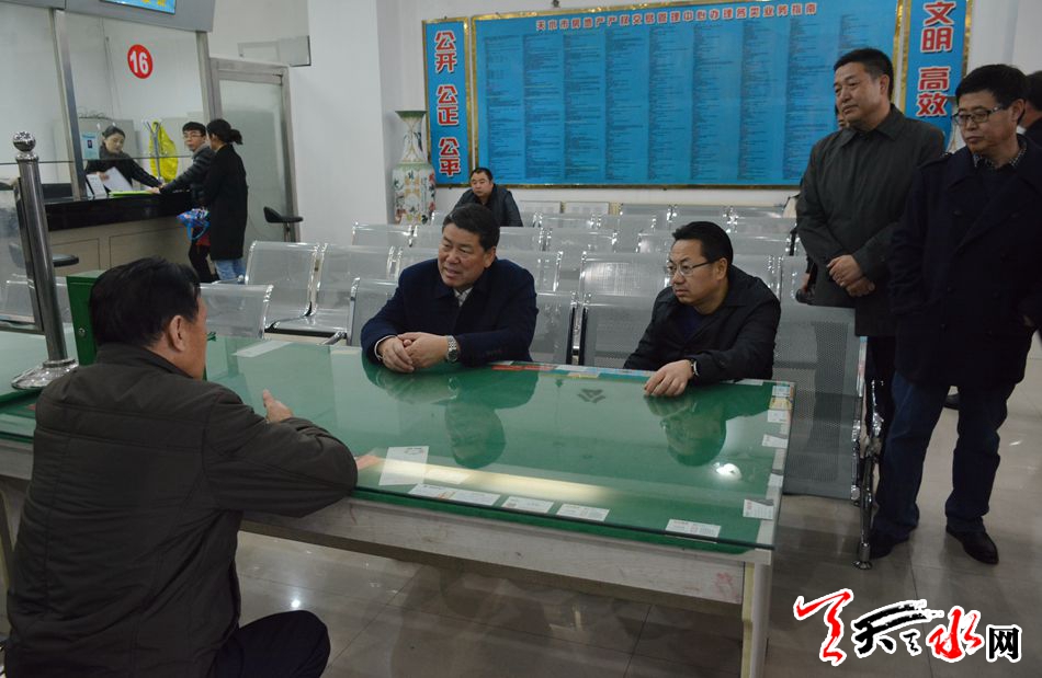 王军一行先后来到市公共资源交易中心、秦州区行政审批服务中心、市不动产登记事务中心和市政府政务大厅,每到一处,他与现场工作人员及办事群众认真交谈,详细了解服务事项、办理程序、办结时间、便民服务措施开展等相关情况。