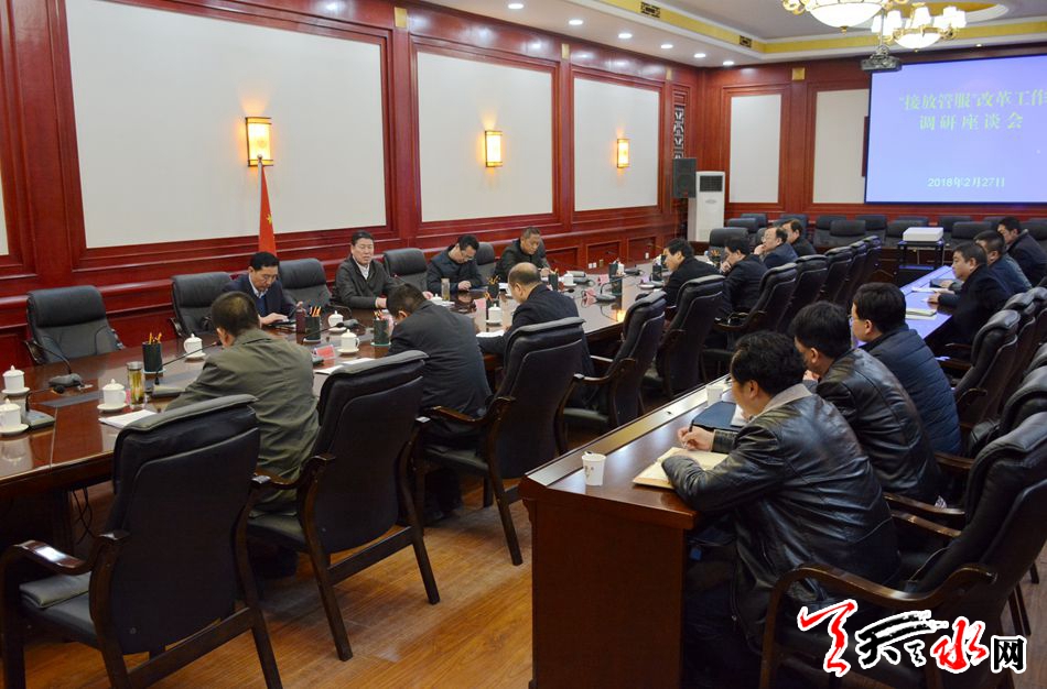 天天天水网讯【全媒体记者吴丽娜】2月27日,市委副书记、市长王军对全市“接放管服”改革工作进行调研。他强调,要牢固树立以人民为中心的发展思想,深入贯彻落实中央和省、市决策部署,高水平、高标准、高质量做好“接放管服”改革各项工作,坚定不移推动政府治理体系现代化。
