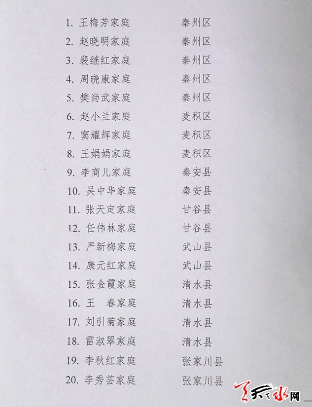 天水市文明家庭名单