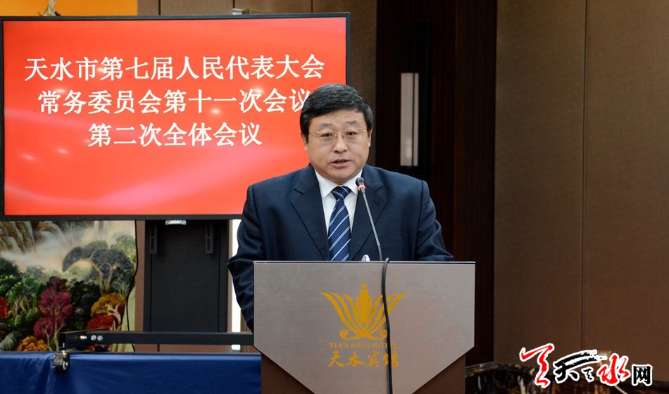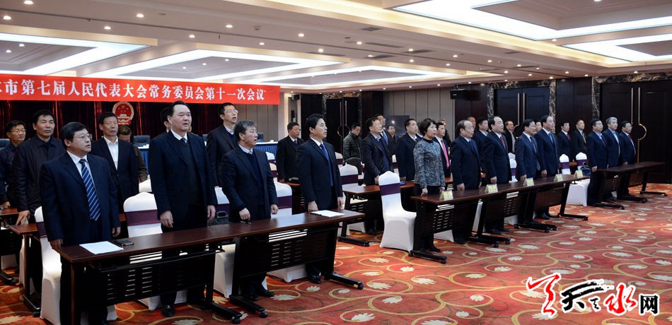 天天天水网讯【全媒体记者马放】2月28日,市第七届人民代表大会常务委员会第十一次会议在天水宾馆召开。市人大常委会党组书记、主任蒋晓强,市人大常委会副主任王晓琴分别主持了第一次、第二次全体会议。市人大常委会32名组成人员出席会议,符合法定人数。