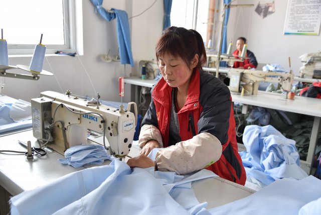 职校学员王爱弟正在学习缝纫,她计划学成后去苏州服装厂打工。(新华社记者 王朋 摄)