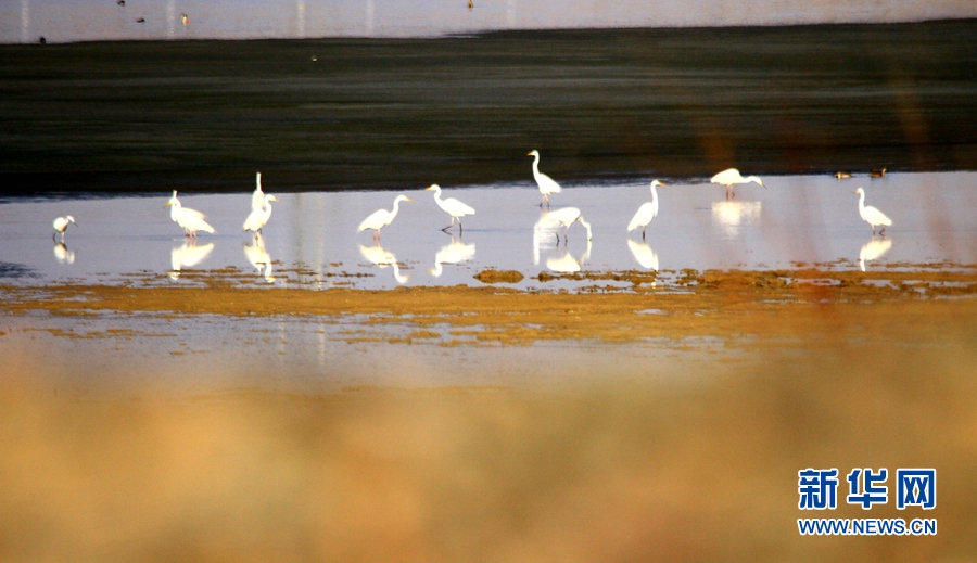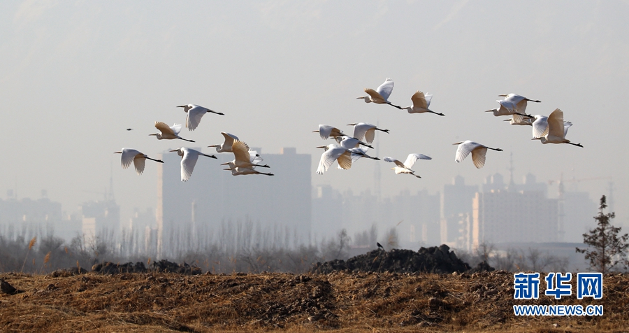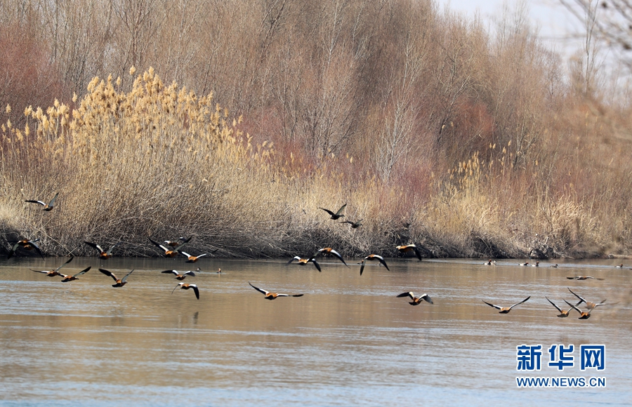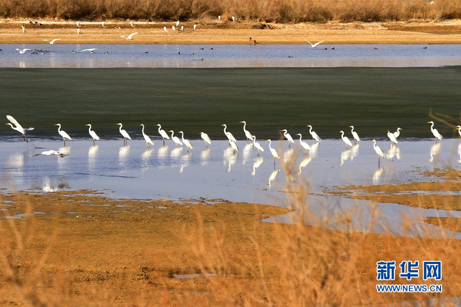 初春时节,甘肃张掖国家湿地公园迎来大批白鹭、池鹭等向北迁徙的候鸟,群聚的候鸟时而振翅高飞舞蹁跹,时而曲颈向天歌,成为张掖国家湿地公园一道靓丽的风景。新华网发(陈礼摄)