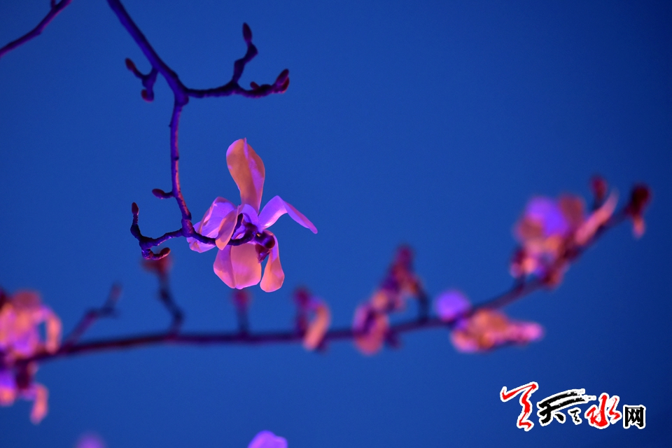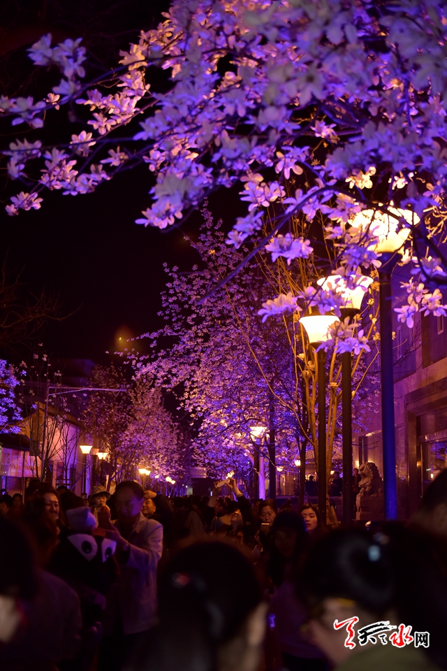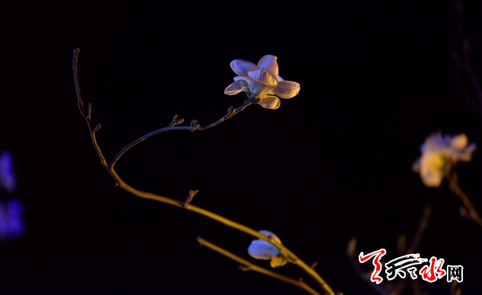 三月的诗意总被春暖花开吟诵,古城天水的夜赋予烂漫春花的却是另外一番迷人景致,昨夜的“玉兰古巷”就开启了秦州春夜里的幻化美景。