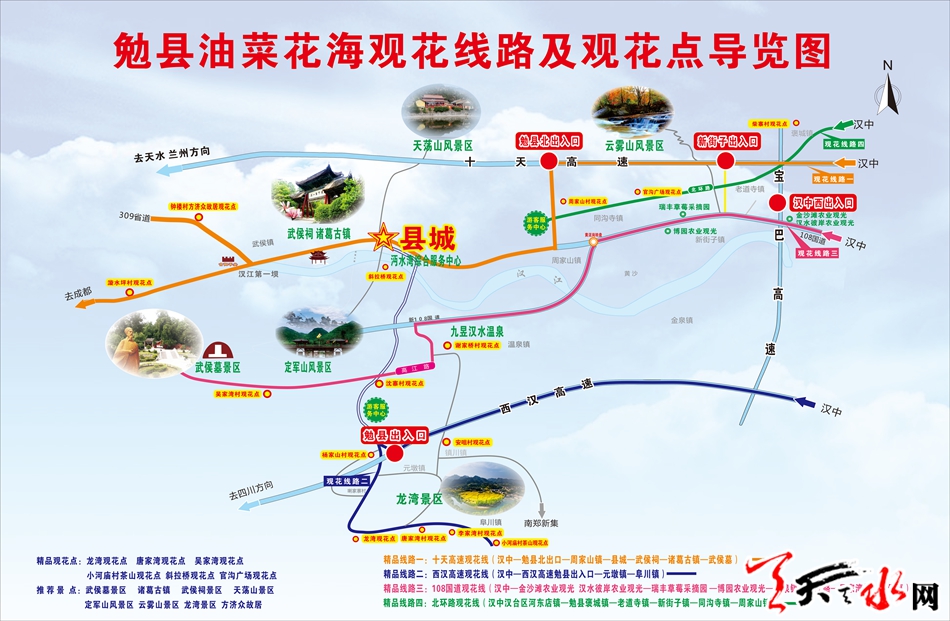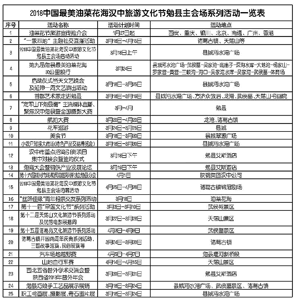 天天天水网汉中勉县电 又是一年春光好,依然万顷菜花香。2018中国最美油菜花海汉中旅游文化节将于3月18日在主会场勉县沔水湾综合服务中心盛大开幕。
