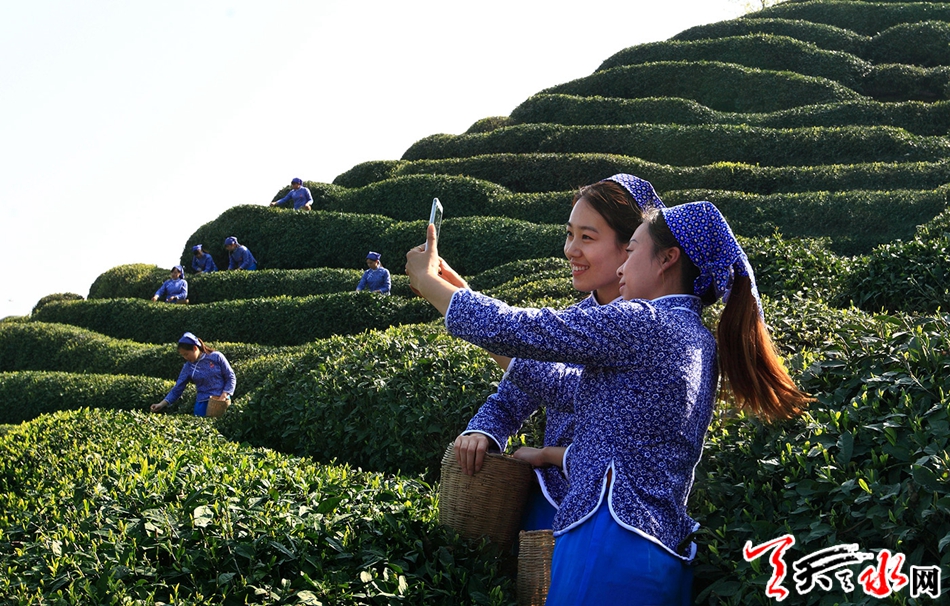 在漆树坝镇万亩高山茶园上,采茶姑娘繁忙。(资料图)——徐鹏