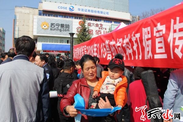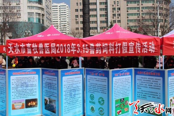 天天天水网讯 为了确保我市兽药饲料质量安全,营造打假护农的良好社会氛围, 3月15日,天水市畜牧兽医局在中心广场开展了兽药饲料农资打假宣传活动。