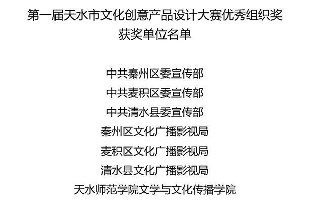 天水市首届文化创意产品设计大赛获奖作品名单