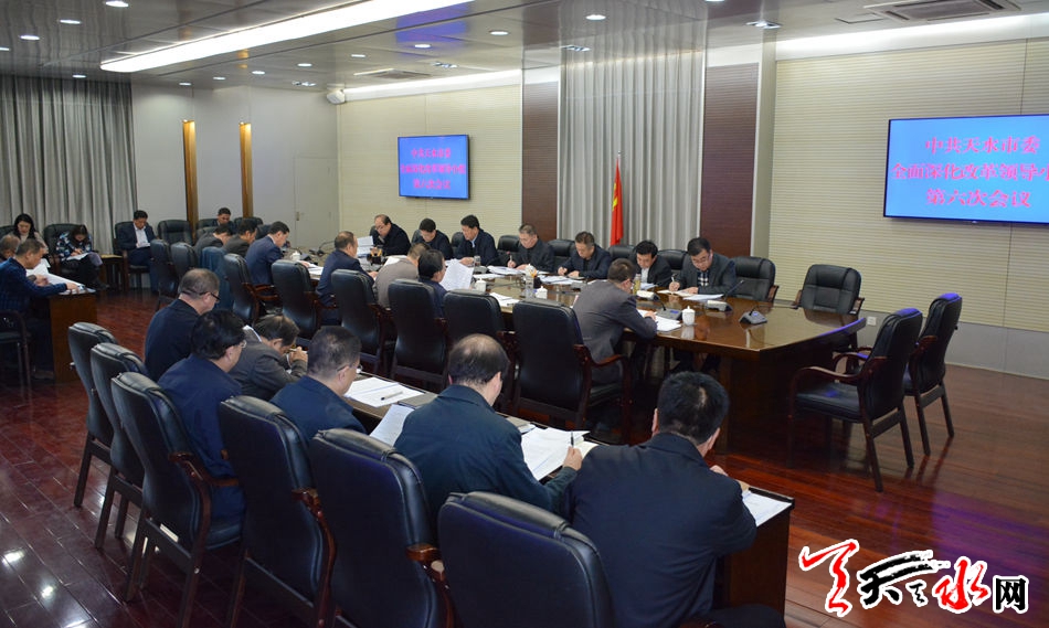 天天天水网讯【全媒体记者王晓馨】3月22日,市委书记、市委全面深化改革领导小组组长王锐主持召开市委全面深化改革领导小组第六次会议。王锐强调,全市各级各部门要深入学习贯彻党的十九大精神和习近平总书记全面深化改革重要思想,提高政治站位,强化责任担当,推动重要领域和关键环节改革取得新成效,为全市经济社会发展提供强劲动力,以优异成绩迎接改革开放40周年。