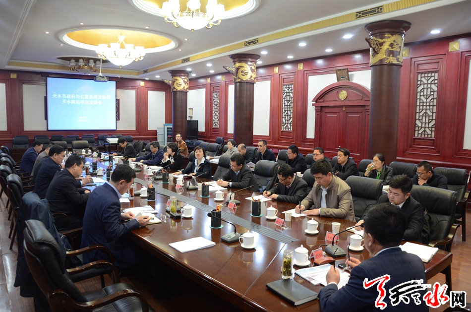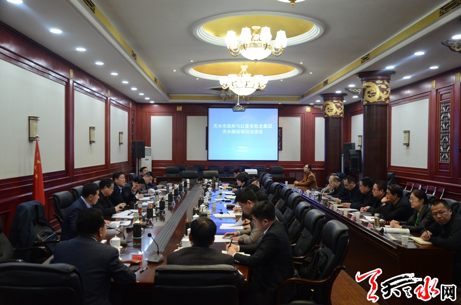 天天天水网讯【全媒体记者吴丽娜】3月21日,天水市政府与红星美凯龙家居集团举行项目洽谈会,双方就天水南站综合交通枢纽及站前广场项目合作事宜进行了洽谈交流。市委副书记、市长王军主持会议并讲话。