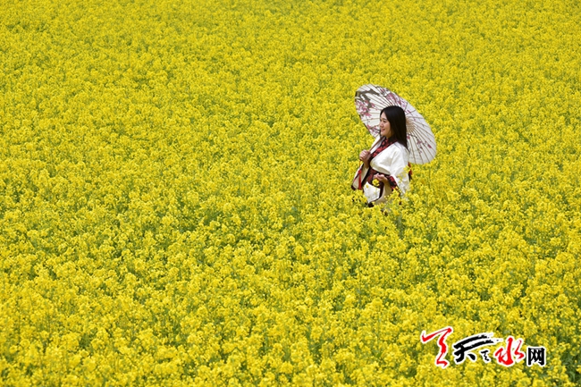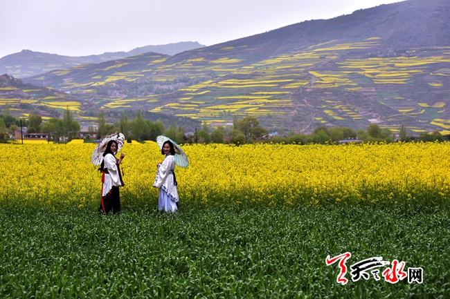 天水的春天,视野的风景线上总是被五彩的花解读着它的斑斓大美,春色盈野的新阳千亩杏林,“人面桃花相映红”的秦安万亩桃园,武山龙台的油菜花海,还有秦州华岐成片成片的白牡丹,共同描绘出天水之间古城的盎然春韵。
