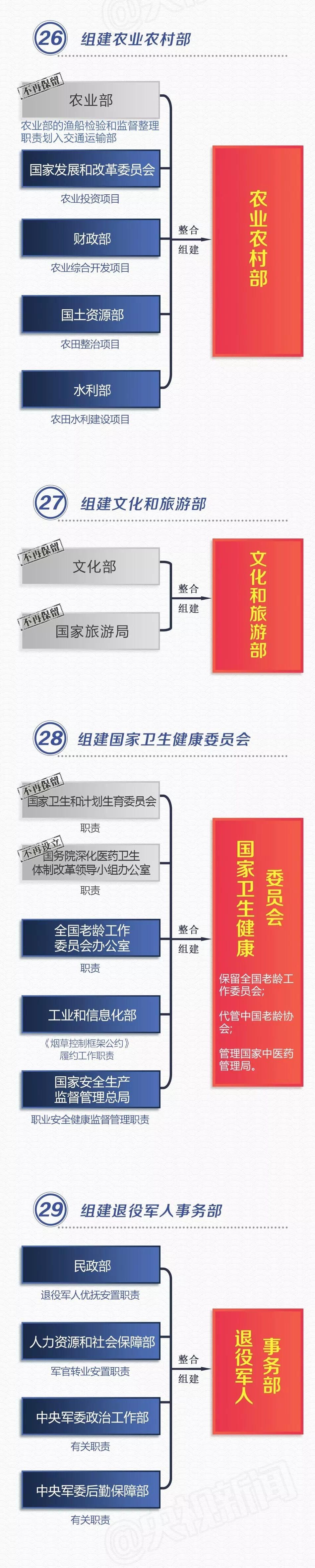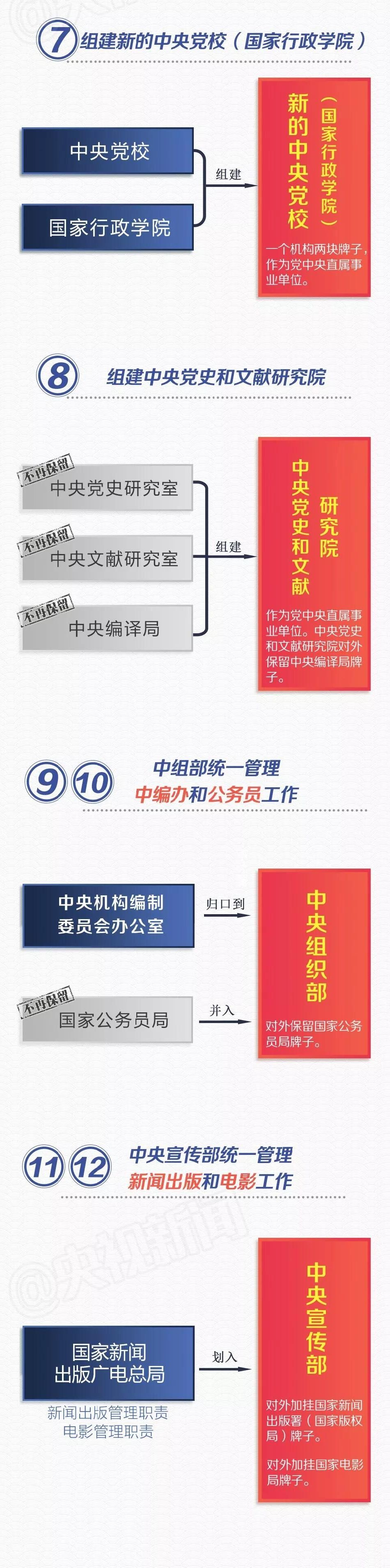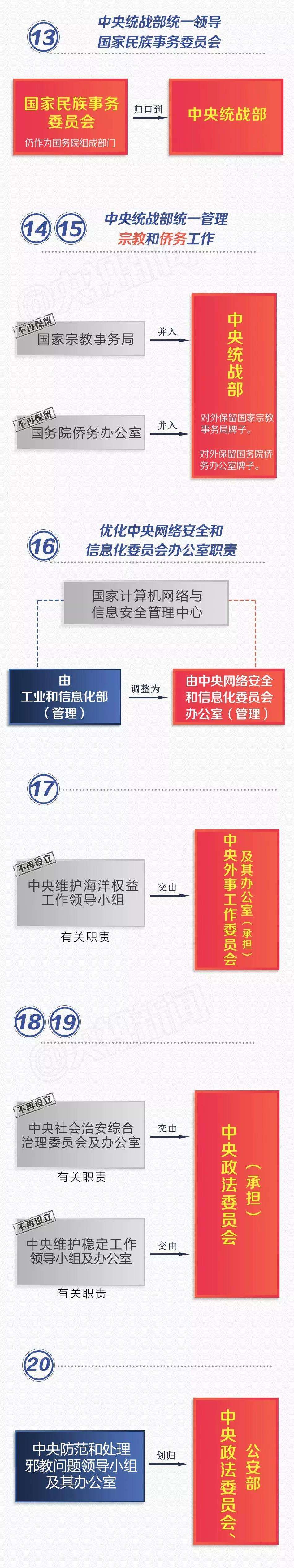 根据该方案,这次机构改革包括党、政府、人大、政协、群团、社会组织、跨军地等中央和地方各层级机构。具体调整,一张图看懂