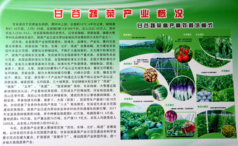 据悉,2017年,甘谷全县蔬菜播种面积达28.05万亩,蔬菜总产量95.8万吨,总产值16.89亿元。蔬菜产业在调整农业种植结构,促进农村经济发展,增加农民收入等方面发挥了重要作用。