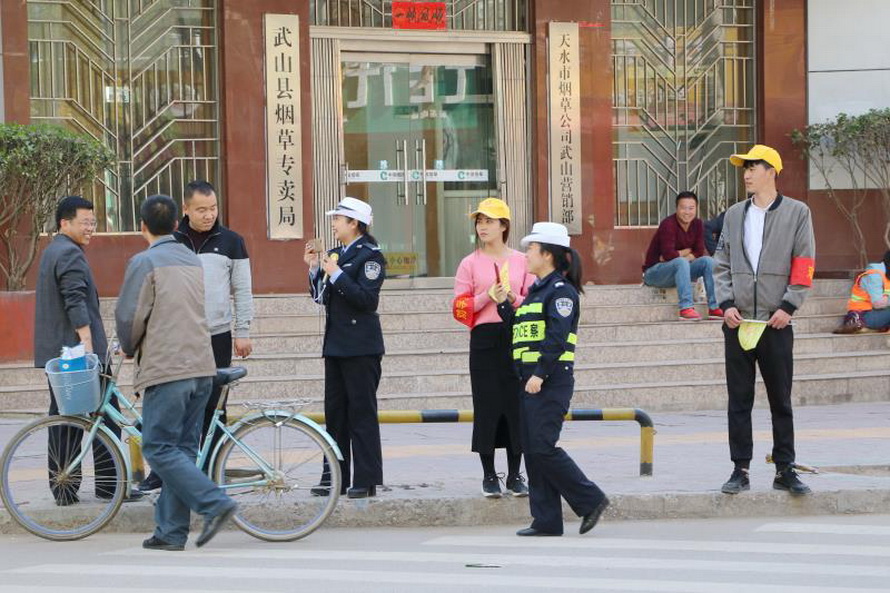 清水县公安局交警大队在西关什字、中山路什字及充国北路顺达车站门口,开展不礼让斑马线严查严管统一查处行动,大队指挥中心通过视频监控加大对“不礼让斑马线”违法行为的录入力度。宣传中队组织安排华谊驾校学员组成文明交通志愿着小分队,跟随交警开展文明交通志愿劝导,向驾驶人、行人散发宣传单,及时劝导、纠正不礼让斑马线、行人不遵守交通秩序等行为。为确保本次宣传活动取得良好效果,民警还采取今日头条微直播方式对整治劝导活动进行直播。