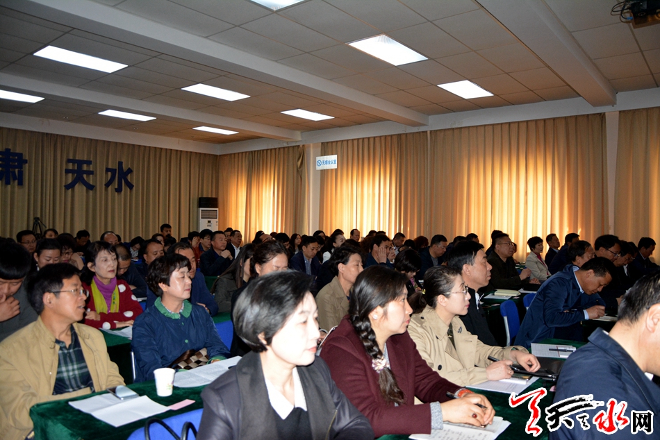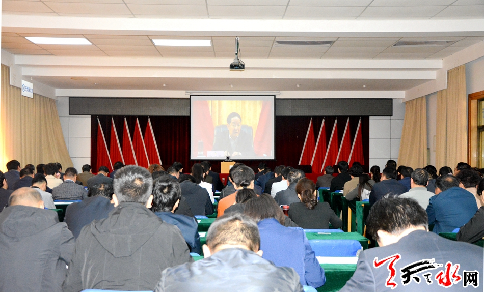 我市政协在家副主席王振宇、苏定武、郭明兴、逯克宗、屈光平及部分常委委员在天水分会场收看培训班开班式。