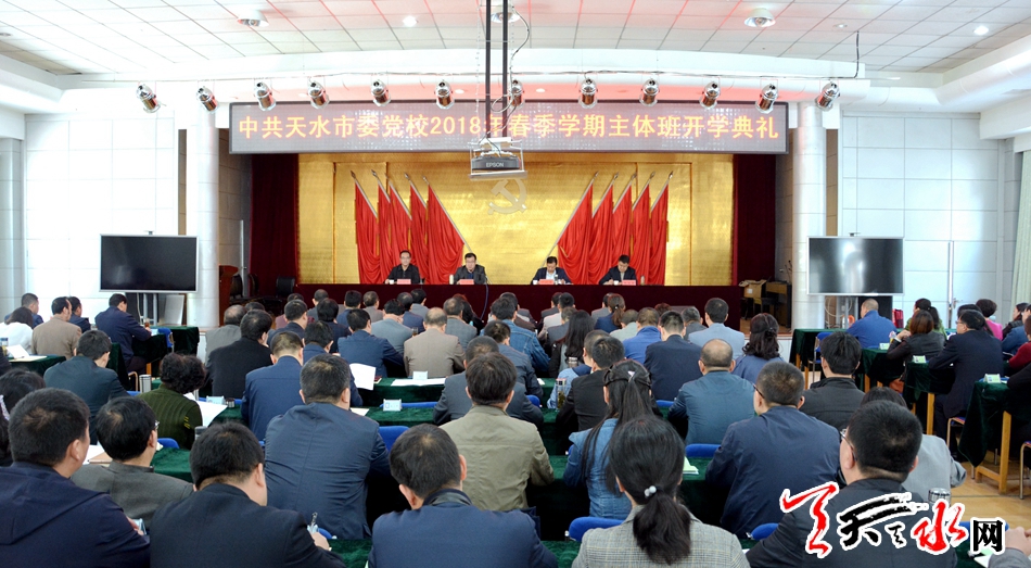 天天天水网讯【记者徐媛】4月3日,市委党校举行2018年春季学期主体班开学典礼。市委常委、组织部长王正茂出席典礼。他要求,广大学员要借此机会加强学习、增强本领,争当天水改革发展的排头兵。