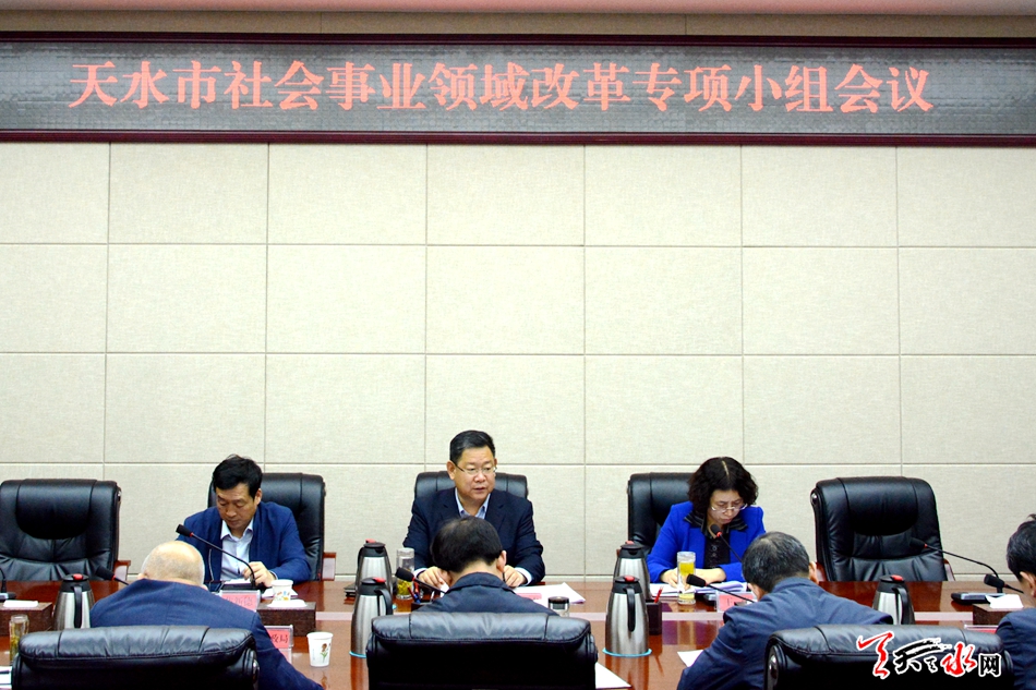 天天天水网讯【记者徐媛】4月4日,市社会事业领域改革专项小组召开全体会议。副市长、市社会事业领域改革专项小组组长张建杰出席会议并讲话,副市长、市社会事业领域改革专项小组副组长王燕主持会议。