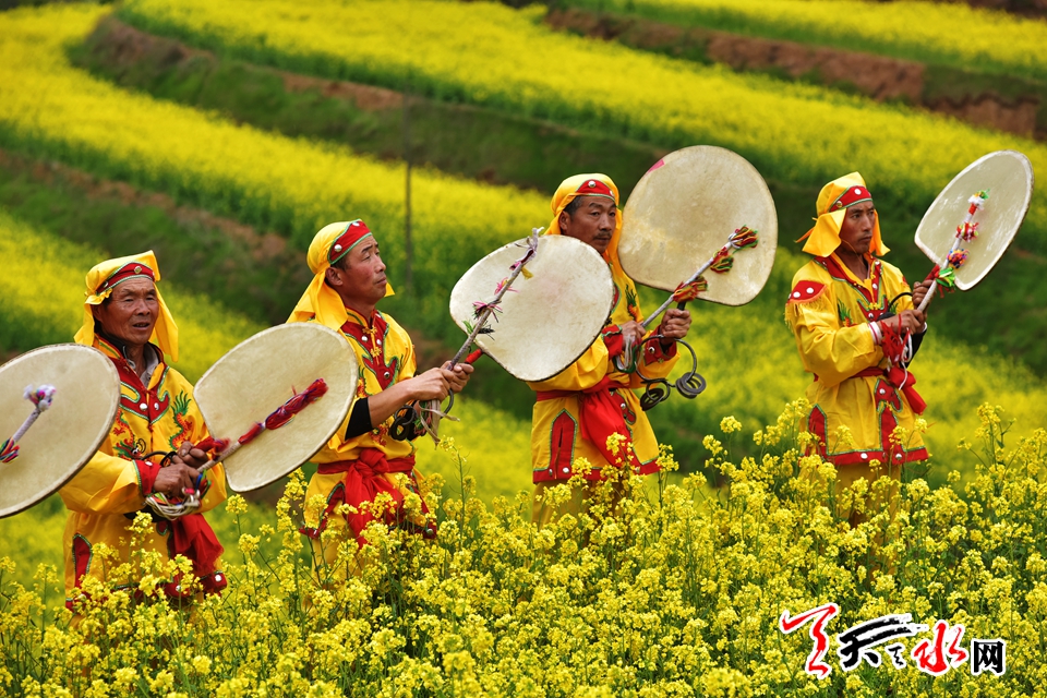 如果说连翘花的黄渲染更多的是健康,那么油菜花的美则更多向人们绽放的是它的丰收和喜悦,观赏过武山县龙台油菜花,不必东奔西走,最美油菜花海就在家门口的感叹已成为众多天水游客的共鸣,得天独厚的山区气候条件,塑造了城沿公路沿线“人间四月芳菲尽,龙台油菜始盛开”的自然美景,作为武山县重点培育的生态旅游品牌,以万亩油菜花海为依托,摧生出集生态长廊 天然氧吧 观光农业、休闲度假为一体的镇域旅游经济发展新格局,正如武山旋鼓发出的铿锵之音,声名远播。
