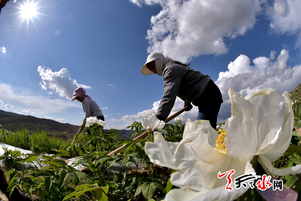 蓝天白云在秦州从没有暴露出它的吝啬,华岐镇汪团村的2500亩油用牡丹,在春风、白云、蓝天的呵护下,“雍容风度谁堪致”的朵朵牡丹,怒放出的魅力风情,开启了“一城晚卉压群芳,“大气由来不必妆”的诗情画韵。